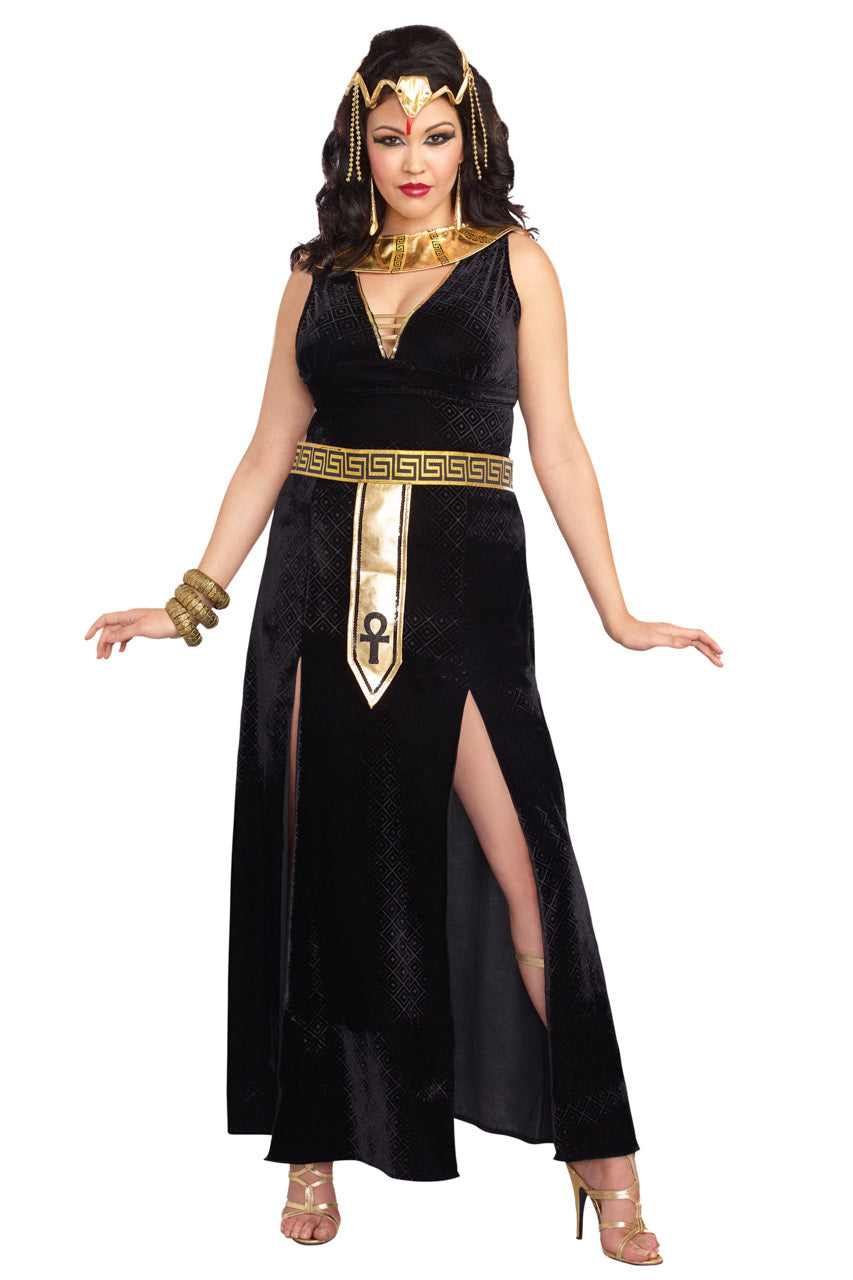 Go from Queen of the Nile to goddess incarnate in this Exquisite Cleopatra costume, which includes a long black velvet gown with embossed details, a gold collar, and a gold belt. With this sexy ensemble, you'll be able to embody Cleopatra for any holiday event or party. (Headpiece not included.)