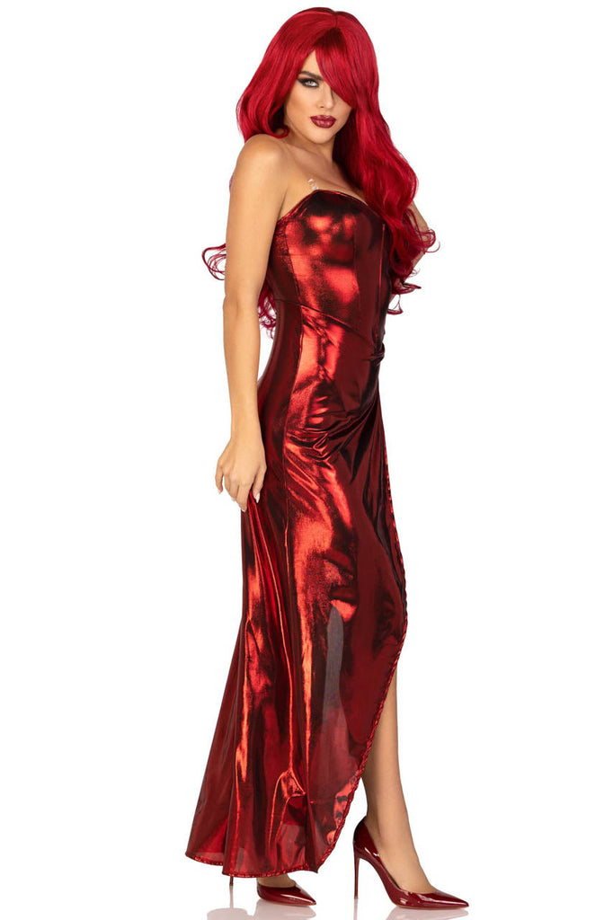 This Wet Look Dress Costume features a distinctive design that will set you apart from the crowd. The dress is constructed of an adaptable fabric that will embrace your curves and highlight them. The dress's top rises high to highlight your breast and neck, and the side zip makes it simple to put on and take off. This is the ideal Halloween costume for a woman who wants to feel like a celebrity.