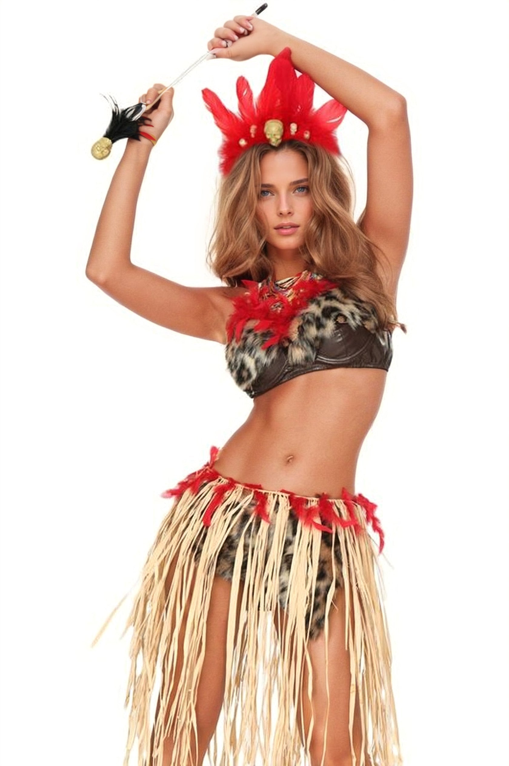 You'll stand out at your upcoming Halloween party in this voodoo princess outfit. While giving the makeup and headdress a sexy edge, the midriff-baring top and skirt will make you look stunning. You can go out in public with confidence knowing that even if you run into old friends or family members, they won't recognize you thanks to this elegant outfit.